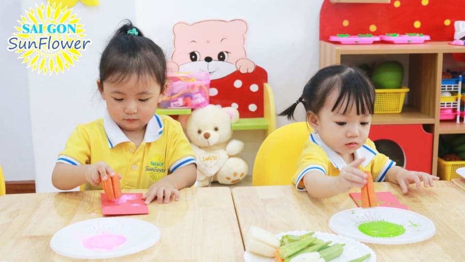 Thực phẩm được nhập từ chi nhánh công ty TNHH SÚP LƠ XANH, được ban quản lý an toàn thực phẩm TP.HCM cấp giấy chứng nhận. Bếp ăn được thiết kế theo phương pháp bếp ăn một chiều, đồ dùng bếp được sử dụng 100% bằng Inox 304. Mỗi ngày bé được phục vụ 2 bữa chính và 2 bữa phụ, gồm các món ăn chính và kèm theo trái cây, sữa chua, sữa tươi, nước trái cây. Vào thứ 6 cuối tháng bé sẽ được dùng buffet đa dạng các món ăn vô cùng hấp dẫn, ngon miệng.